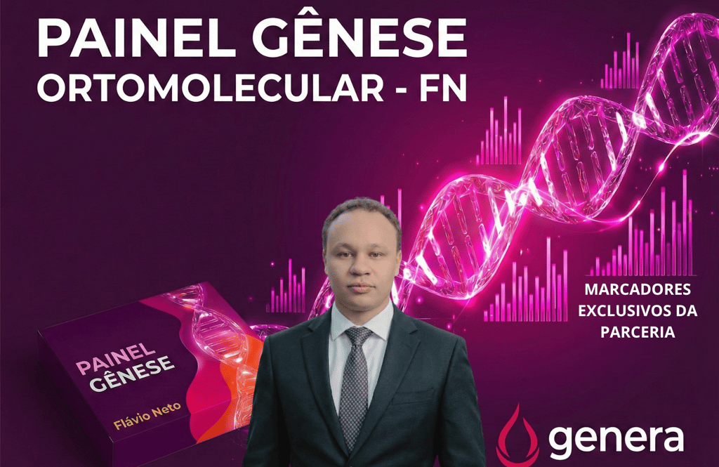Diferente de exames de sangue que mostram apenas o seu momento atual, o seu DNA é imutável — ele é o seu código-fonte permanente. O Painel Gênese Ortomolecular - FN foi projetado para ser o seu investimento definitivo em saúde.